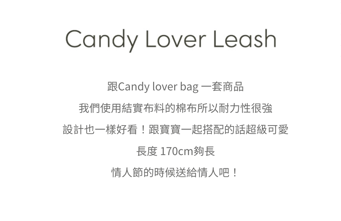 - 跟Candy lover bag 一套商品我們使用結實布料的棉布所以耐力性很強,設計也一樣好看!