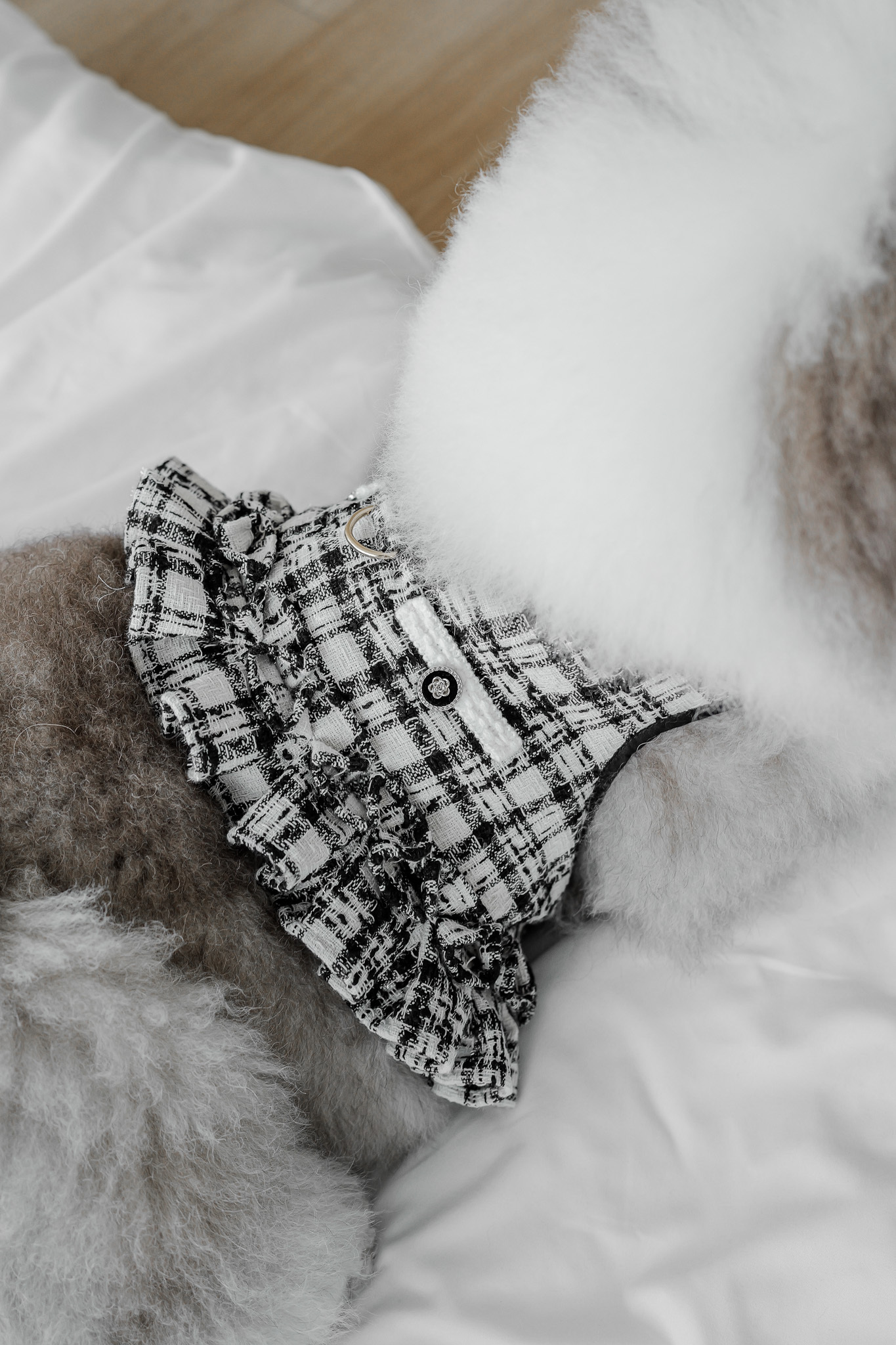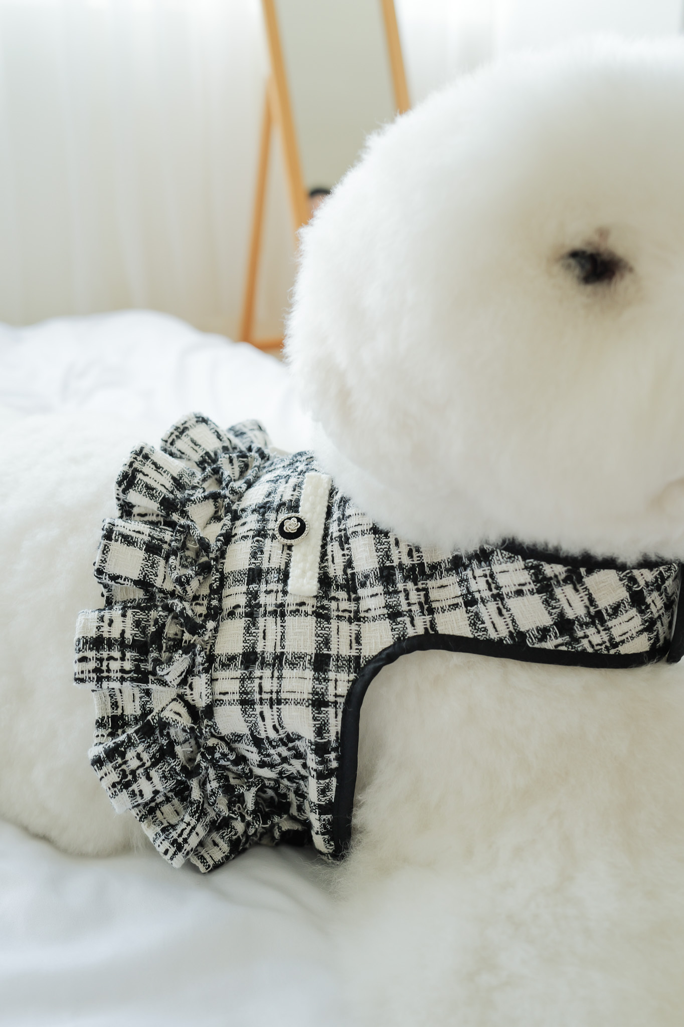 此款服飾胸背和牽繩不適用於會爆衝及過度拉扯的毛孩使用,會爆衝的毛孩建議可以在胸背內或外使用自有胸背及牽繩較為安全,此款胸背屬性為服飾配件,不做為安全胸背牽繩使用